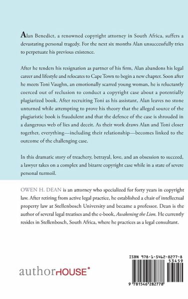 Alan Benedict, a renowned copyright attorney in South Africa, suffers a devastating personal tragedy. For the next six months Alan unsuccessfully tries to perpetuate his previous existence. After he tenders his resignation as partner of his firm, Alan abandons his legal career and lifestyle and relocates to Cape Town to begin a new chapter. Soon after he meets Toni Vaughn, an emotionally scarred young woman, he is reluctantly coerced out of reclusion to conduct a copyright case about a potentially plagiarized book. After recruiting Toni as his assistant, Alan leaves no stone unturned while attempting to prove his theory that the alleged source of the plagiaristic book is fraudulent and that the defence of the case is shrouded in a dangerous web of lies and deceit. As their work draws Alan and Toni closer together, everything—including their relationship—becomes linked to the outcome of the challenging case. In this dramatic story of treachery, betrayal, love, and an obsession to succeed, a lawyer takes on a complex and bizarre copyright case while in a state of severe personal turmoil.