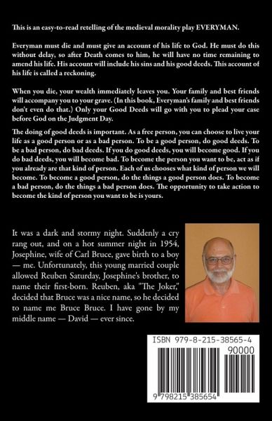 This is an easy-to-read retelling of the medieval morality play EVERYMAN. Everyman must die and must give an account of his life to God. He must do this without delay, so after Death comes to him, he will have no time remaining to amend his life. His account will include his sins and his good deeds. This account of his life is called a reckoning. When you die, your wealth immediately leaves you. Your family and best friends will accompany you to your grave. (In this book, Everyman's family and best friends don't even do that.) Only your Good Deeds will go with you to plead your case before God on the Judgment Day. Do you know a language other than English? If you do, I give you permission to translate this book, copyright your translation, publish or self-publish it, and keep all the royalties for yourself. (Do give me credit, of course, for the original retelling.) I would like to see my retellings of classic literature used in schools, so I give permission to the country of Finland (and all other countries) to give copies of any or all of my retellings to all students forever. I also give permission to the state of Texas (and all other states) to give copies of any or all of my retellings to all students forever. I also give permission to all teachers to give copies of any or all of my retellings to all students forever. Of course, libraries are welcome to use my eBooks for free. Teachers need not actually teach my retellings. Teachers are welcome to give students copies of my eBooks as background material. For example, if they are teaching Homer's Iliad and Odyssey, teachers are welcome to give students copies of my Virgil's Aeneid: A Retelling in Prose and tell students, "Here's another ancient epic you may want to read in your spare time."