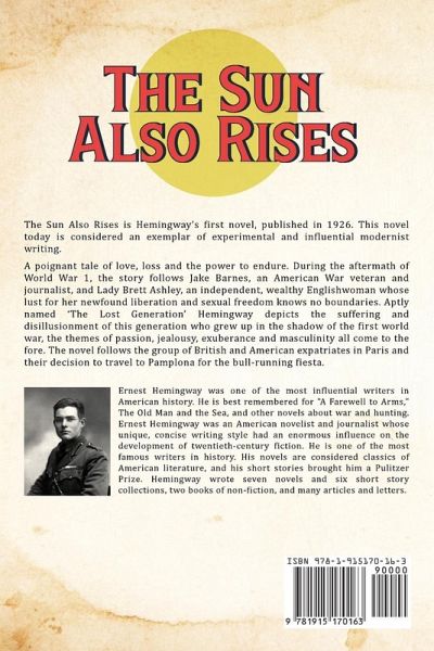 A gripping novel that captures the essence of The Lost Generation. Set in post World War I Europe, the story follows a group of disillusioned expatriates as they travel from Paris to Pamplona for the annual running of the bulls. The protagonist, Jake Barnes, is a wounded war veteran who struggles with impotence and his love for the beautiful lady Brett Ashley, a glamorous and independent woman who embodies the flatter culture of the time. As they navigate the complexities of their relationships and try to find meaning in a world that has been shattered by war, they are drawn into a world of excess, decadance, and violence. Hemingway's spare and powerful prose captures the raw emotions of the characters, conveying their sense of disillusionment, frustration and yearning. With vivid descriptions of the Spanish countryside, the bullfights, and the nightlife of Paris, the novel offers a compelling portrait of a lost generation struggling to find their place in a changing world.