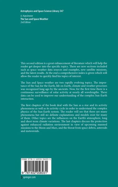 The field of solar physics and solar--terrestrial relation, now called space weather, is evolving rapidly. As in the first edition, it is assumed that it is inevitable for the reader to get some basic knowledge in solar physics since the Sun is the main driver for space weather The term space weather itself has been gaining more and more attention during the past years as our society becomes more and more dependent on satellites, which are vulnerable to varying conditions in space. Space weather efforts and investigations are being made all over the world and more and more is known about the complex relations of processes on the Sun and the Earth and its space environment. The term space climate nowadays includes the long-term variations caused mainly by the Sun on the Earth and the interplanetary space. As in the first edition of the book, this edition also covers these topics but new chapters have been introduced, e. g. , a chapter on real-time space weather forecasts and some main space weather data sources. All the chapters have updated information, taking into account the results of new satellite missions and telescopes. The book also includes a great amount of new literature (more than 340 original citations) so that the reader is able to go into more details, if required in the respective chapters.