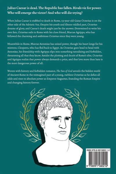 Julius Caesar is dead. The Republic has fallen. Rivals vie for power. Who will emerge the victor? And who will die trying? When Julius Caesar is stabbed to death in Rome, 19-year-old Gaius Octavius is on the other side of the Adriatic Sea. Despite his youth and illness-riddled past, Octavius dreams of glory, and Caesar's death might just be the answer. Determined to write his own fate, Octavius sails to Rome with his close friend, Marcus Agrippa, who has followed the rich, charming, and ambitious Octavius since they were young. Meanwhile in Rome, Marcus Antonius has seized power, though his heart longs for his mistress, Cleopatra, who has fled back to Egypt. As Octavius goes head to head with Antonius, his friendship with Agrippa slips into something tantalizing and forbidden, threatening all that they know. Amidst the plotting and deceit of Rome's elite, Octavius and Agrippa realize that power always demands a price, and that love more than hate is the most dangerous power of all. Woven with history and forbidden romance, The Sun of God unveils the hidden world of Ancient Rome in the reimagined past of a young, ruthless Octavius as he defies all odds and rises to absolute power as Emperor Augustus, founding the Roman Empire and changing history forever. A "gripping work of historical fiction," says the US Review of Books. "As the novel unfolds, readers become even more immersed in the treachery, brutality, and deception that formed some of Ancient Rome's most unforgettable-and most scandalous-stories."