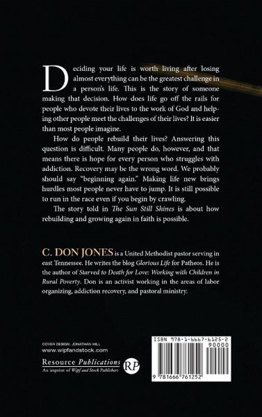 Deciding your life is worth living after losing almost everything can be the greatest challenge in a person's life. This is the story of someone making that decision. How does life go off the rails for people who devote their lives to the work of God and helping other people meet the challenges of their lives? It is easier than most people imagine. How do people rebuild their lives? Answering this question is difficult. Many people do, however, and that means there is hope for every person who struggles with addiction. Recovery may be the wrong word. We probably should say ""beginning again."" Making life new brings hurdles most people never have to jump. It is still possible to run in the race even if you begin by crawling. The story told in The Sun Still Shines is about how rebuilding and growing again in faith is possible.