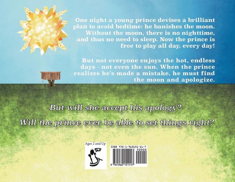 One night a young prince devises a brilliant plan to avoid bedtime: he banishes the moon. Without the moon, there is no nighttime, and thus no need to sleep. Now the prince is free to play all day, every day! But not everyone enjoys the hot, endless days - not even the sun. When the prince realizes he's made a mistake, he must find the moon and apologize. But will she accept his apology? Will the prince ever be able to set things right?