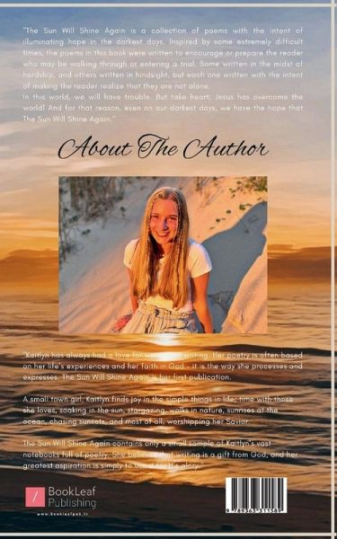 The Sun Will Shine Again is a collection of poems with the intent of illuminating hope in the darkest days. Inspired by some extremely difficult times, the poems in this book were written to encourage or prepare the reader who may be walking through or entering a trial. Some written in the midst of hardship, and others written in hindsight, but each one written with the intent of making the reader realize that they are not alone. In this world, we will have trouble. But take heart; Jesus has overcome the world! And for that reason, even on our darkest days, we have the hope that The Sun Will Shine Again.