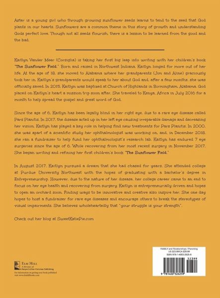 The story opens with a little girl named Aster looking forward to visiting her families Sunflower Field. As the morning progresses Aster brushes her teeth, has breakfast, and gets her hair put in braids. Aster and her mom and dad arrive at the Sunflower Field just to discover that they named the field after Aster. They also give her a seed, so they can plant it once Christmas has passed. The story transitions as the sunflower grows showing that Aster is now a grown up with her own husband and daughter. Grown Aster is telling her daughter Emmy the story of the sunflower seed which then helps Aster tell Emmy she is going to be a big sister. The story comes full circle with Aster watching Emmy plant a sunflower seed for herself and her baby brother. Not only does the seed represent new life, it also represents patience, but most of all it it's a visual representation of the seeds that God plants in our hearts!