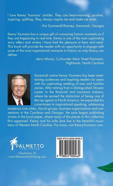 Kenny Youmans is a native of Savannah, Georgia. He has been entertaining, educating, and inspiring church groups, civic clubs, business organizations, and conventions for years with his captivating retelling of new and familiar stories. After retiring from a 36-year career in the financial and insurance industry, in which he earned the distinction as one of the top 50 agents in North America, Kenny has expanded his commitment to inspirational speaking along with writing articles for the local newspaper. He currently resides in Highlands, North Carolina, with his wife of 54 years, Jane.
