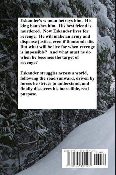 Eskander's woman betrays him. His king banishes him. His best friend is murdered. Now Eskander lives for revenge. He will make an army and dispense justice, even if thousands die. But what will he live for when revenge is impossible? And what will he do when he becomes a target of revenge? Eskander struggles across a world, following the road sunward, driven by forces he strives to understand, and finally discovers his incredible, real purpose.