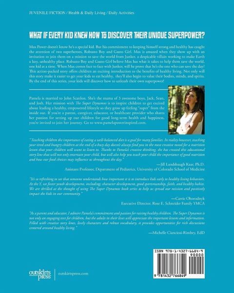 What if Every Kid Knew How To Discover Their Unique Superpower? Max Power doesn't know he's a special kid. But his commitment to keeping himself strong and healthy has caught the attention of two superheroes, Robusto Boy and Gusto Girl. Max is amazed when they show up with an invitation to join them on a mission to save the world from Junker, a despicable villain working to make Earth a lazy, unhealthy place. Robusto Boy and Gusto Girl believe Max has what it takes to help them save the world, one kid at a time. When Max comes face to face with Junker, will he prove that he's the one who can save the day? This action-packed story offers children an exciting introduction to the benefits of healthy living. Not only will this story make it easier to get your kids to eat healthy, they'll also begin to value their bodies, minds, and spirits. By the end of this series, your kids will discover how to unleash their own superpower!