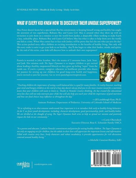 What if Every Kid Knew How To Discover Their Unique Superpower? Max Power doesn't know he's a special kid. But his commitment to keeping himself strong and healthy has caught the attention of two superheroes, Robusto Boy and Gusto Girl. Max is amazed when they show up with an invitation to join them on a mission to save the world from Junker, a despicable villain working to make Earth a lazy, unhealthy place. Robusto Boy and Gusto Girl believe Max has what it takes to help them save the world, one kid at a time. When Max comes face to face with Junker, will he prove that he's the one who can save the day? This action-packed story offers children an exciting introduction to the benefits of healthy living. Not only will this story make it easier to get your kids to eat healthy, they'll also begin to value their bodies, minds, and spirits. By the end of this series, your kids will discover how to unleash their own superpower!