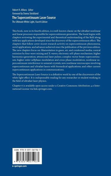 The Supercontinuum Laser Source is a definitive work by one of the discoverers of the white light effect. It is indispensable reading for any researcher or student working in the field of ultrafast laser physics.