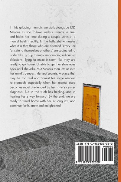 In this gripping memoir, we walk alongside MD Marcus as she follows orders, stands in line, and bides her time during a couple stints at a mental health facility. In the halls, she witnesses what it is that those who are deemed "crazy" or "unsafe to themselves or others" are subjected to undertake: group therapy, announcing ridiculous delusions-lying to make it seem like they are ready to go home. Unable to get her shoelaces back until she asks, MD Marcus then lets us into her mind's deepest, darkest secrets. A place that may be too real and honest for some readers to stomach, especially when her mental state becomes most challenged by her sister's cancer diagnosis. But in the truth lies healing, and in healing lies a way forward. By the end, we are ready to travel home with her, at long last, and continue forth, anew and enlightened.