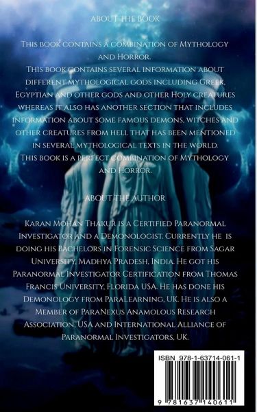 This book contains a combination of Mythology and Horror. This book contains several information about different mythological gods including Greek, Egyptian and other gods and other Holy creatures whereas it also has another section that includes information about some famous demons, witches and other creatures from hell that has been mentioned in several mythological texts in the world. This book is a perfect combination of Mythology and Horror. Get Your Copies Now!!!
