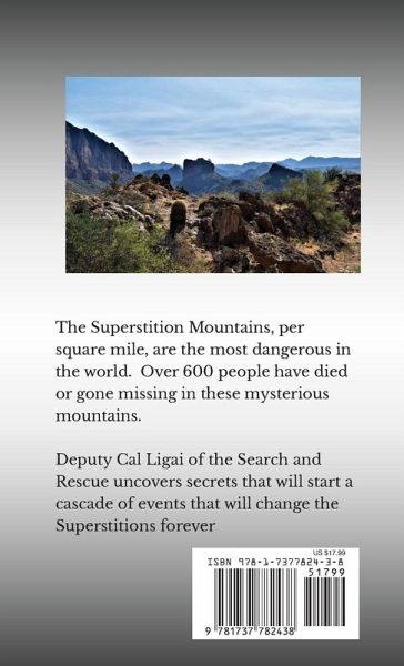 The Superstition Mountains, per square mile, are the most dangerous in the world. Over 600 people have died or gone missing in these mysterious mountains. Deputy Cal Ligai of the Search and Rescue uncovers secrets that will start a cascade of events that will change the Superstitions forever.