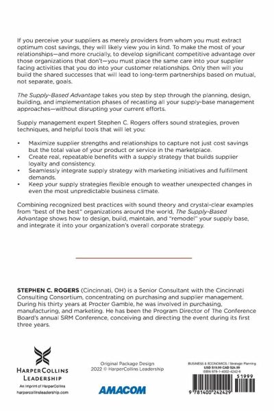 Stephen C. Rogers (Cincinnati, OH) is a Senior Consultant with the Cincinnati Consulting Consortium, concentrating on purchasing and supplier management. During his thirty years at Procter Gamble, he was involved in purchasing, manufacturing, and marketing. He has been the Program Director of The Conference Board's annual SRM Conference, conceiving and directing the event during its first three years.