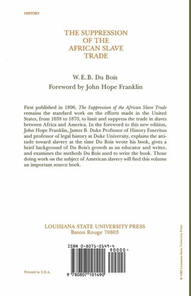 First published in 1896, the Supression of the African Slave Trade remains the standard work on the efforts made in the United States, from 1638 to 1870, to limit and suppress the trade in slaves between Africa and America. In the foreword to this new edition, John Hope Franklin, James B. Duke Professor of History Emeritus and professor of legal history at Duke University, explains the attitude toward slavery at the time Du Bois wrote his book, gives a brief background of Du Bois's growth as an educator and writer, and examines the methods Du Bois used to write the book. Those doing work on the subject of American slavery will find this volume an important source book.