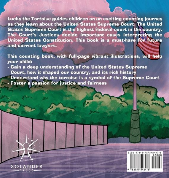 Lucky the Tortoise guides children on an exciting counting journey as they learn about the United States Supreme Court. The United States Supreme Court is the highest federal court in the country. The Court's Justices decide important cases interpreting the United States Constitution. This book is a must-have for future and current lawyers. This counting book, with full-page vibrant illustrations, will help your child: - Gain a deep understanding of the United States Supreme Court, how it shaped our country, and its rich history - Understand why the tortoise is a symbol of the Supreme Court - Foster a passion for justice and fairness