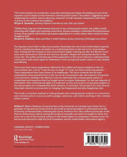 The Supreme Court's Role in Mass Incarceration illuminates the role of the United States Supreme Court's criminal procedure revolution as a contributing factor to the rise in U.S. incarceration rates. Noting that the increase in mass incarceration began climbing just after the Warren Court years and continued to climb for the next four decades-despite the substantial decline in the crime rate-the author posits that part of the explanation is the Court's failure to understand that a trial system with robust rights for defendants is not a strong trial system unless it is also reliable and efficient. There have been many explanations offered for the sudden and steep escalation in the U.S. incarceration rate, such as "it was the war on drugs" to "it was our harsh sentencing statutes." Those explanations have been shown to be inadequate. This book contends that we have overlooked a more powerful force in the rise of our incarceration rate-the long line of Supreme Court decisions, starting in the Warren Court era, that made the criminal justice system so complicated and expensive that it no longer serves to protect defendants. For the vast majority of defendants, their constitutional rights are irrelevant, as they are forced to accept plea bargains or face the prospect of a comparatively harsh sentence, if convicted. The prospect of a trial, once an important restraint on prosecutors in charging, has disappeared and plea-bargaining rules. This book is essential reading for both graduate and undergraduate students in corrections and criminal justice courses as well as judges, attorneys, and others working in the criminal justice system.