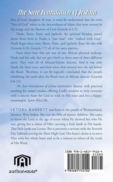 The Sure Foundation of Jeshua Son of God, daughter of man, it must be understood that the term "Son of God" refers to the descendants of Adam that were created in the image and the likeness of God (Genesis 6:1-2). Noah, Shem, Ham, and Japheth, the spiritual blessing passed down from Seth to Noah, a "just man" who "walked with God." Noah begat three sons: Shem, Ham, and Japheth, from his one wife (Genesis 6:18, Genesis 7:7) all of the same parents. Facts show how this son was of one African physical makeup. Noah and his wife did not give birth to three sons of three different races. They were all of African/Edenic descent. And it was only Noah, his three sons, and their wives that entered into the ark before the flood. Therefore, it can be logically concluded that the people inhabiting the earth after the flood were of African descent (Genesis 6:8-10). The Sure Foundation of Jeshua intertwines history with practical teaching for today's reader, offering Godly wisdom to help everyone with a sincere heart for God to walk in His ways and live a happy, meaningful, Spirit-filled life.