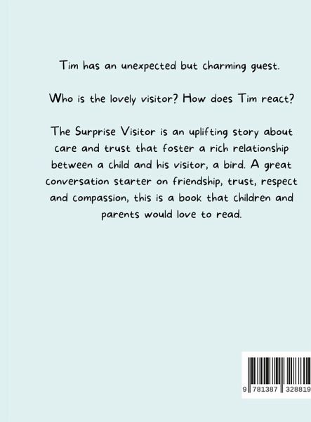Tim has an unexpected but charming guest. Who is the lovely visitor? How does Tim react? 'The surprise visitor' is a colorful, wonderful story that will instill positive traits while inculcating reading habits in young readers. A great conversation starter on friendship, trust, respect and compassion, this is a book that children and parents love to read. The book has 32 pages of fascinating illustrations. Warm up to an uplifting story about care and trust that foster a rich relationship between a child and his visitor, a bird.