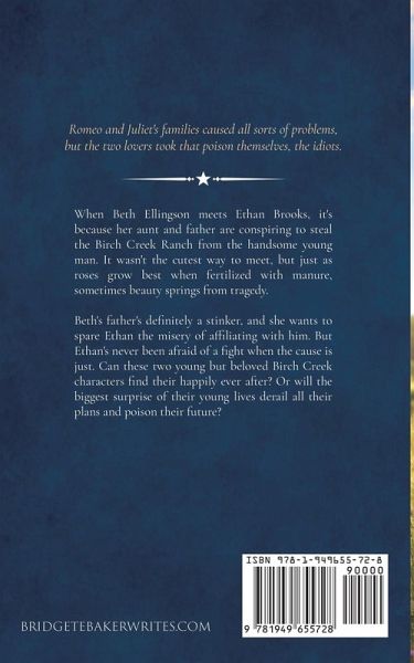 Romeo and Juliet's families caused all sorts of problems, but the two lovers took that poison themselves, the idiots. When Beth Ellingson meets Ethan Brooks, it's because her aunt and father are conspiring to steal the Birch Creek Ranch from the handsome young man. It wasn't the cutest way to meet, but just as roses grow best when fertilized with manure, sometimes beauty springs from tragedy. Beth's father's definitely a stinker, and she wants to spare Ethan the misery of affiliating with him. But Ethan's never been afraid of a fight when the cause is just. Can these two young but beloved Birch Creek characters find their happily ever after? Or will the biggest surprise of their young lives derail all their plans and poison their future?