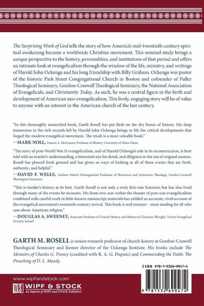 The Surprising Work of God tells the story of how America's mid-twentieth-century spiritual awakening became a worldwide Christian movement. This seminal study brings a unique perspective to the history, personalities, and institutions of that period and offers an intimate look at evangelicalism through the window of the life, ministry, and writings of Harold John Ockenga and his long friendship with Billy Graham. Ockenga was pastor of the historic Park Street Congregational Church in Boston and cofounder of Fuller Theological Seminary, Gordon-Conwell Theological Seminary, the National Association of Evangelicals, and Christianity Today. As such, he was a central figure in the birth and development of American neo-evangelicalism. This lively, engaging story will be of value to anyone with an interest in the American church of the last century.