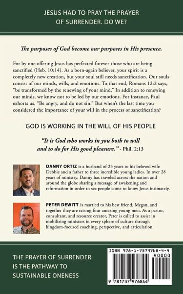 Jesus had to pray the prayer of surrender. Do we? The purposes of God become our purposes in His presence. For by one offering Jesus has perfected forever those who are being sanctified (Heb. 10:14). As a born-again believer, your spirit is a completely new creation, but your soul still needs sanctification. Our souls consists of our mind, will, and emotions. To that end, Romans 12:2 says, "be transformed by the renewing of your mind." In addition to renewing our minds, we know not to be led by our emotions. For instance, Paul exhorts us, "Be angry, and do not sin." But when's the last time you considered the importance of your will in the process of sanctification? Our will is what causes grumbling and complaining (Phil. 2:12-14). Our will is what determines how we perceive doctrine (Jn. 7:17). Our will is often what stands between us and our calling (Mt. 26:36-48). God is working in the will of His people. "For it is God who works in you both to will and to do for His good pleasure." (Phil. 2:13) This book will invite you back to the Garden of Gethsemane where Jesus beckons to His disciples to "watch and pray." "Not my will, Father, but Your's be done."