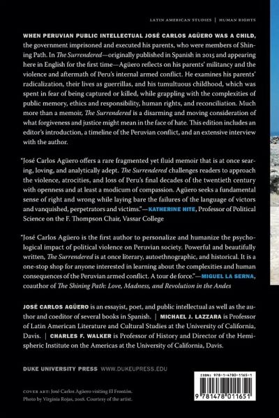 When Peruvian public intellectual José Carlos Agüero was a child, the government imprisoned and executed his parents, who were members of Shining Path. In The Surrendered-originally published in Spanish in 2015 and appearing here in English for the first time-Agüero reflects on his parents' militancy and the violence and aftermath of Peru's internal armed conflict. He examines his parents' radicalization, their lives as guerrillas, and his tumultuous childhood, which was spent in fear of being captured or killed, while grappling with the complexities of public memory, ethics and responsibility, human rights, and reconciliation. Much more than a memoir, The Surrendered is a disarming and moving consideration of what forgiveness and justice might mean in the face of hate. This edition includes an editors' introduction, a timeline of the Peruvian conflict, and an extensive interview with the author.