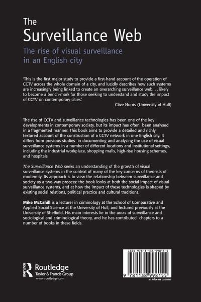 The rise of CCTV and surveillance technologies has been one of the key developments in contemporary society, but its impact has often been analysed in a fragmented manner. This book addresses this issue by providing a detailed, micro-sociological account of the construction of a CCTV network in one English city. It differs from previous studies (which have concentrated on open street CCTV systems) in documenting and analysing the use of visual surveillance systems in a number of different locations and institutional settings, including the industrial workplace, shopping malls, high-rise housing schemes, and hospitals. It is concerned not just with abstract categories of 'grand theory' but seeks to explain how people living in contemporary society experience these changes. The Surveillance Web situates the growth of visual surveillance systems in the context of many of the key concerns of theorists of modernity, and makes a key contribution to understanding the nature of the relationship between surveillance and society. Its starting point is to view the relationship between surveillance and society as a two way process: the book looks at both the social impact of visual surveillance systems, and at how the impact of these technologies is shaped by existing social relations, political practice and cultural traditions. provides a richly textured account and analysis of the introduction of visual surveillance technologies (CCTV) in an English cityexplores the impact of the introduction and use of visual surveillance systems in a wide variety of locales and institutional settings, both public and privatemakes a key contribution to theoretical debates over the relationship between surveillance systems and society, one of the central concerns of theorists of modernity