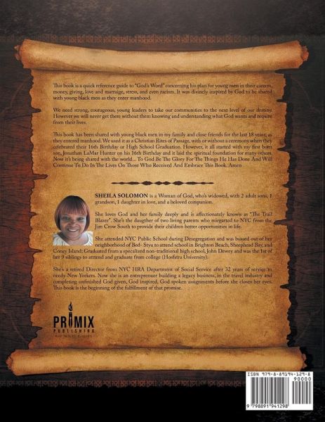 This book is a quick reference guide to "God's Word" concerning his plan for young men in their careers, money, giving, love and marraige, stress, and even racism. It was divinely inspired by God to be shared with young black men as they enter manhood. We need strong, courageous, young leaders to take our communities to the next level of our destiny. However we will never get there without them knowing and understanding what God wants and require from their lives.