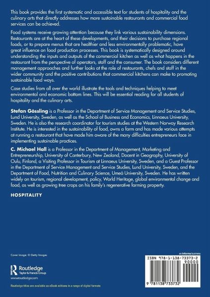 Food systems receive growing attention because they link various sustainability dimensions. Restaurants are at the heart of these developments, and their decisions to purchase regional foods, or to prepare menus that are healthier and less environmentally problematic, have great influence on food production processes. This book is systematically designed around understanding the inputs and outputs of the commercial kitchen as well as what happens in the restaurant from the perspective of operators, staff and the consumer. The book considers different management approaches and further looks at the role of restaurants, chefs and staff in the wider community and the positive contributions that commercial kitchens can make to promoting sustainable food ways.