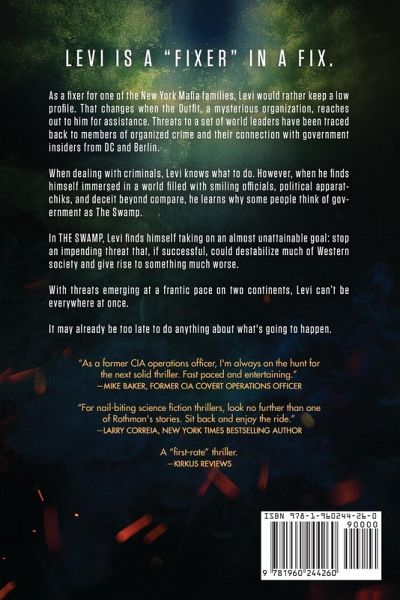 From a USA Today bestselling author: Crime world fixer Levi is hunting down those who want to destabilize Western society and finds himself dealing with corrupt government apparatchiks from both sides of the Atlantic. A riveting thriller about power, corruption, and deadly politics. --- As a fixer for one of the New York Mafia families, Levi would rather keep a low profile. That changes when the Outfit, a mysterious organization, reaches out to him for assistance. Threats to a set of world leaders have been traced back to members of organized crime and their connection with government insiders from DC and Moscow. When dealing with criminals, Levi knows what to do. However, when he finds himself immersed in a world filled with smiling officials, political apparatchiks, and deceit beyond compare, he learns why some people think of government as The Swamp. In THE SWAMP, Levi finds himself taking on an almost unattainable goal: stop an impending threat that, if successful, could destabilize much of Western society and give rise to something much worse. With threats emerging at a frantic pace on two continents, Levi can't be everywhere at once. It may already be too late to do anything about what's going to happen.