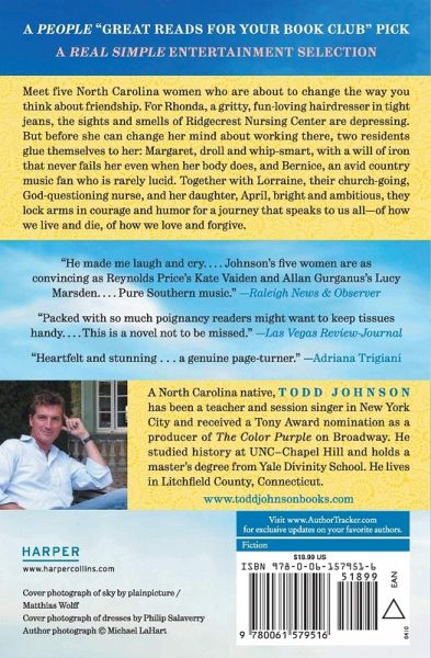 Meet five North Carolina women who are about to change the way you think about friendship. For Rhonda, a gritty, fun-loving hairdresser in tight jeans, the sights and smells of Ridgecrest Nursing Center are depressing. But before she can change her mind about working there, two residents glue themselves to her: Margaret, droll and whip-smart, with a will of iron that never fails her even when her body does, and Bernice, an avid country music fan who is rarely lucid. Together with Lorraine, their church-going, God-questioning nurse, and her daughter, April, bright and ambitious, they lock arms in courage and humor for a journey that speaks to us all--of how we live and die, of how we love and forgive.