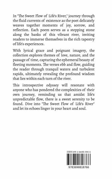 In "The Sweet Flow of Life's River," journey through the fluid currents of existence as the poet delicately weaves together moments of joy, sorrow, and reflection. Each poem serves as a stepping stone along the banks of this vibrant river, inviting readers to immerse themselves in the rich tapestry of life's experiences. With lyrical grace and poignant imagery, the collection explores themes of love, nature, and the passage of time, capturing the ephemeral beauty of fleeting moments. The verses ebb and flow, guiding the reader through tranquil waters and turbulent rapids, ultimately revealing the profound wisdom that lies within each turn of the river. This introspective odyssey will resonate with anyone who has pondered the complexities of their own journey, reminding us that amidst life's unpredictable flow, there is a sweet serenity to be found. Dive into "The Sweet Flow of Life's River" and let its echoes linger in your heart and soul.