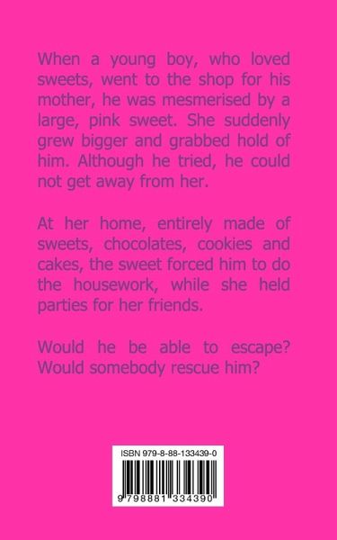 When a young boy, who loved sweets, went to the shop for his mother, he was mesmerised by a large, pink sweet. She suddenly grew bigger and grabbed hold of him. Although he tried, he could not get away from her. At her home, entirely made of sweets, chocolates, cookies and cakes, the sweet forced him to do the housework, while she held parties for her friends. Would he be able to escape? Would somebody rescue him?