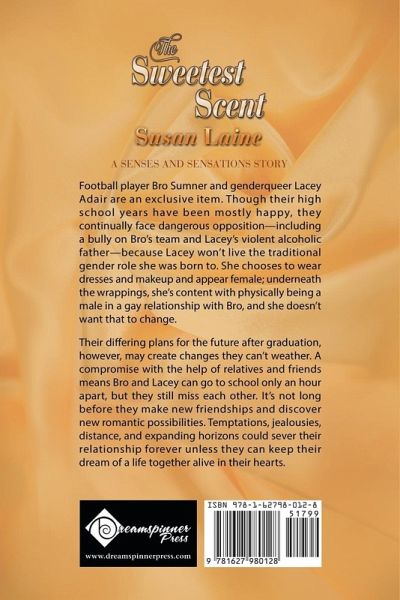 A Senses and Sensations Story Football player Bro Sumner and genderqueer Lacey Adair are an exclusive item. Though their high school years have been mostly happy, they continually face dangerous opposition-including a bully on Bro's team and Lacey's violent alcoholic father-because Lacey won't live the traditional gender role she was born to. She chooses to wear dresses and makeup and appear female; underneath the wrappings, she's content with physically being a male in a gay relationship with Bro, and she doesn't want that to change. Their differing plans for the future after graduation, however, may create changes they can't weather. A compromise with the help of relatives and friends means Bro and Lacey can go to school only an hour apart, but they still miss each other. It's not long before they make new friendships and discover new romantic possibilities. Temptations, jealousies, distance, and expanding horizons could sever their relationship forever unless they can keep their dream of a life together alive in their hearts.