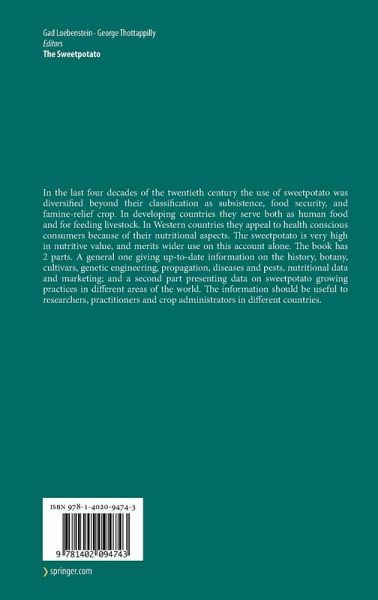 In the last four decades of the twentieth century the use of sweetpotato was diversified beyond their classification as subsistence, food security, and famine-relief crop. In developing countries they serve both as human food and for feeding livestock. In Western countries they appeal to health conscious consumers because of their nutritional aspects. The sweetpotato is very high in nutritive value, and merits wider use on this account alone. The book has 2 parts. A general one giving up-to-date information on the history, botany, cultivars, genetic engineering, propagation, diseases and pests, nutritional data and marketing; and a second part presenting data on sweetpotato growing practices in different areas of the world. The information should be useful to researchers, practitioners and crop administrators in different countries.