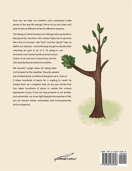 How can we help our children (and ourselves) make sense of the way life swings? We're all up and down and side to side at different times for different reasons. The Swing of Life is the story of a little girl who wants life to feel good ALL the time. Her mother helps her to see that life is full of contrast-the "bad" and the "good" help us define our desires-and ultimately, we get to decide what meaning we give to all of it. To swing in our emotions and mental health *is* to be human. That's all ok and how it should be; and it's also exactly why we need one another. Just as we wouldn't judge trees for being bent and shaped by the weather, so too, people are bent and shaped by the conditions they grow up in. If we can stay present in our bodies, and remember our inner light despite the weather of life, we can remain whole, connected, worthy, and good inside.