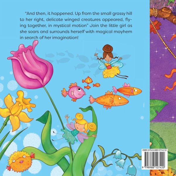 "And then, it happened. Up from the small grassy hill to her right, delicate winged creatures appeared, flying together, in mystical motion" Join the little girl as she soars and surrounds herself with magical mayhem in search of her imagination!