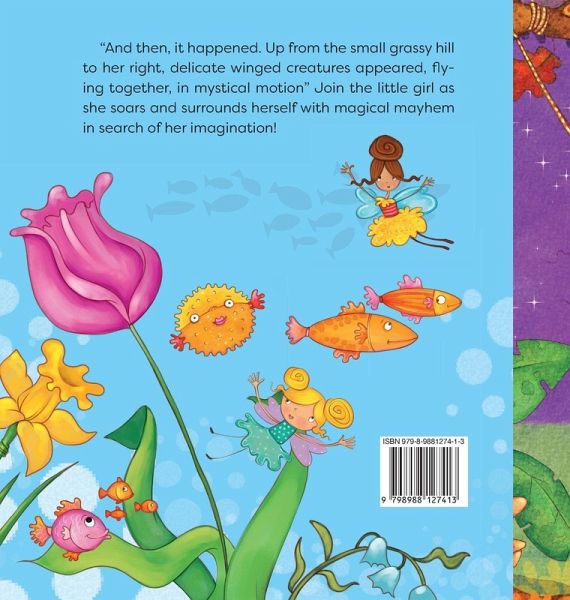 "And then, it happened. Up from the small grassy hill to her right, delicate winged creatures appeared, flying together, in mystical motion" Join the little girl as she soars and surrounds herself with magical mayhem in search of her imagination!
