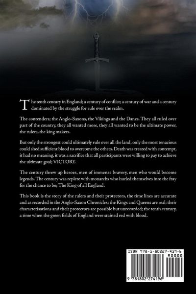 The tenth century in England; a century of conflict; a century of war and a century dominated by the struggle for rule over the realm. The contenders; the Anglo-Saxons, the Vikings and the Danes. They all ruled over part of the country, they all wanted more, they all wanted to be the ultimate power, the rulers, the king makers. But only the strongest could ultimately rule over all the land, only the most tenacious could shed sufficient blood to overcome the others. Death was treated with contempt, it had no meaning, it was a sacrifice that all participants were willing to pay to achieve the ultimate goal; VICTORY. The century threw up heroes, men of immense bravery, men who would become legends. The century was replete with monarchs who hurled themselves into the fray for the chance to be; The King of all England. This book is the story of the rulers and their protectors, the time lines are accurate and as recorded in the Anglo-Saxon Chronicles; the Kings and Queens are real; their characterisations and their protectors are possible but unrecorded; the tenth century, a time when the green fields of England were stained red with blood.