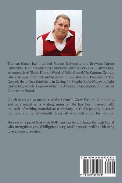 The SWORD of Swords A closer look at how to use GOD'S WORD for what it was intended for with helpful insights. Evangelist Thomas Couch has attended Mercer University and Brewton Parker University. He currently runs a ministry called REVIVE-ALL Ministries, an outreach of "Souls Harbor Word of Faith Church" in Canton, Georgia where he was ordained and licensed to minister as a Preacher of The Gospel. He holds a Certificate in Caring for People God's Way with Light University, which is approved by the American Association of Christian Counselors Board. Couch is an active member of the Colorful Crow Writers Community and is engaged in a writing ministry. He has been blessed with the task of writing material as a ministry to God's people, to reach the lost, and to abundantly bless all who will enjoy his writing. He says it is proof that with GOD you can do all things through Christ who strengthens you, (Philippians 4:13) and he prays it will be a blessing to everyone it reaches.