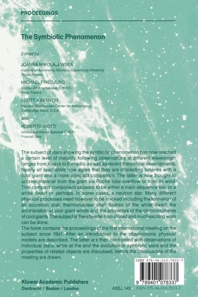 Symbiotic stars were identified spectroscopically as M giants with a very strong He II 4686 emission line. After five decades of study by many astronomers, the first internatioinal meetings devoted to symbiotics were held at the University of Colorado (Boulder) and at the Haute Provence Observatory during the Summer of 1981. These conferences emphasized exciting new results obtained by modern satellite (EINSTEIN, IUE) and ground-based observatories. Although the vast majority of the participants were already fairly sure that symbiotics are almost certainly interacting binary systems, and not…mehr