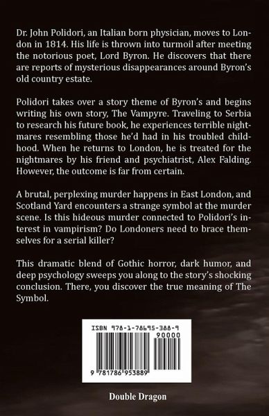 Dr. John Polidori, an Italian born physician, moves to London in 1814. His life is thrown into turmoil after meeting the notorious poet, Lord Byron. He discovers that there are reports of mysterious disappearances around Byron's old country estate. Polidori takes over a story theme of Byron's and begins writing his own story, The Vampyre. Traveling to Serbia to research his future book, he experiences terrible nightmares resembling those he'd had in his troubled childhood. When he returns to London, he is treated for the nightmares by his friend and psychiatrist, Alex Falding. However, the outcome is far from certain. A brutal, perplexing murder happens in East London, and Scotland Yard encounters a strange symbol at the murder scene. Is this hideous murder connected to Polidori's interest in vampirism? Do Londoners need to brace themselves for a serial killer? This dramatic blend of Gothic horror, dark humor, and deep psychology sweeps you along to the story's shocking conclusion. There, you discover the true meaning of The Symbol.