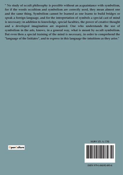 " No study of occult philosophy is possible without an acquaintance with symbolism, for if the words occultism and symbolism are correctly used, they mean almost one and the same thing. Symbolism cannot be learned as one learns to build bridges or speak a foreign language, and for the interpretation of symbols a special cast of mind is necessary; in addition to knowledge, special faculties, the power of creative thought and a developed imagination are required. One who understands the use of symbolism in the arts, knows, in a general way, what is meant by occult symbolism. But even then a special training of the mind is necessary, in order to comprehend the "language of the Initiates", and to express in this language the intuitions as they arise."