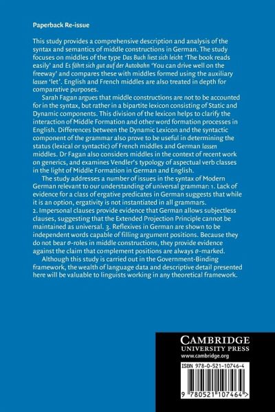 This study comprehensively describes and analyses the syntax and semantics of German reflexive constructions known as middles.