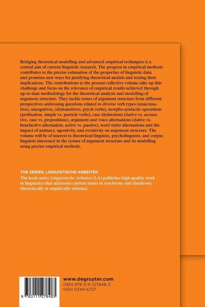 Bridging theoretical modelling and advanced empirical techniques is a central aim of current linguistic research. The progress in empirical methods contributes to the precise estimation of the properties of linguistic data and promises new ways for justifying theoretical models and testing their implications. The contributions to the present collective volume take up this challenge and focus on the relevance of empirical results achieved through up-to-date methodology for the theoretical analysis and modelling of argument structure. They tackle issues of argument structure from different perspectives addressing questions related to diverse verb types (unaccusatives, unergatives, (di)transitives, psych verbs), morpho-syntactic operations (prefixation, simple vs. particle verbs), case distinctions (dative vs. accusative, case vs. prepositions), argument and voice alternations (dative vs. benefactive alternation, active vs. passive), word order alternations and the impact of animacy, agentivity, and eventivity on argument structure. The volume will be of interest to theoretical linguists, psycholinguists, and corpus linguists interested in the syntax of argument structure and its modelling using precise empirical methods.