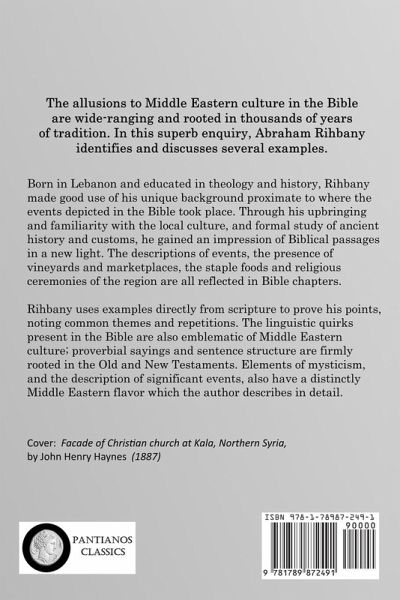 The allusions to Middle Eastern culture in the Bible are wide-ranging and rooted in thousands of years of tradition. In this superb enquiry, Abraham Rihbany identifies and discusses several examples. Born in Lebanon and educated in theology and history, Rihbany made good use of his unique background proximate to where the events depicted in the Bible took place. Through his upbringing and familiarity with the local culture, and formal study of ancient history and customs, he gained an impression of Biblical passages in a new light. The descriptions of events, the presence of vineyards and marketplaces, the staple foods and religious ceremonies of the region are all reflected in Bible chapters. Rihbany uses examples directly from scripture to prove his points, noting common themes and repetitions. The linguistic quirks present in the Bible are also emblematic of Middle Eastern culture; proverbial sayings and sentence structure are firmly rooted in the Old and New Testaments. Elements of mysticism, and the description of significant events, also have a distinctly Middle Eastern flavor which the author describes in detail.