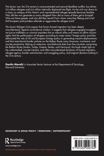 The Syrian Refugee Crisis argues that Syrian forced migration has been deeply misunderstood. Against conventional wisdom, it suggests that refugees engaged smugglers not just as traffickers or criminal exploiters but as natural allies and means to affirm asylum rights; that the politicization of refugees according to major actors' foreign policy priorities obfuscated the role of US and European foreign policy in generating massive displacement; and that restrictionist border policies on the Balkan Route were inhumane, incoherent, and counter-productive. Relying on extensive, rare fieldwork data from five countries comprising the Balkan Route (Jordan, Turkey, Greece, Serbia, and Germany), this book sheds light on the understudied, counter-intuitive, and often-misunderstood dynamics of forced migration, refugee agency, border restrictionism, anti-smuggling policy, and migrant decision-making in the 21st century.
