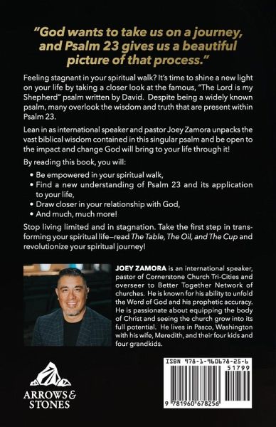 "God wants to take us on a journey, and Psalm 23 gives us a beautiful picture of that process."Feeling stagnant in your spiritual walk? It's time to shine a new light on your life by taking a closer look at the famous, "The Lord is my Shepherd" psalm written by David. Despite being a widely known psalm, many overlook the wisdom and truth that are present within Psalm 23.Lean in as international speaker and pastor Joey Zamora unpacks the vast biblical wisdom contained in this singular psalm and be open to the impact and change God will bring to your life through it!By reading this book, you will:¿Be empowered in your spiritual walk,¿Find a new understanding of Psalm 23 and its application to your life,¿Draw closer in your relationship with God, ¿And much, much more!Stop living limited and in stagnation. Take the first step in transforming your spiritual life-read The Table, The Oil, and The Cup and revolutionize your spiritual journey!
