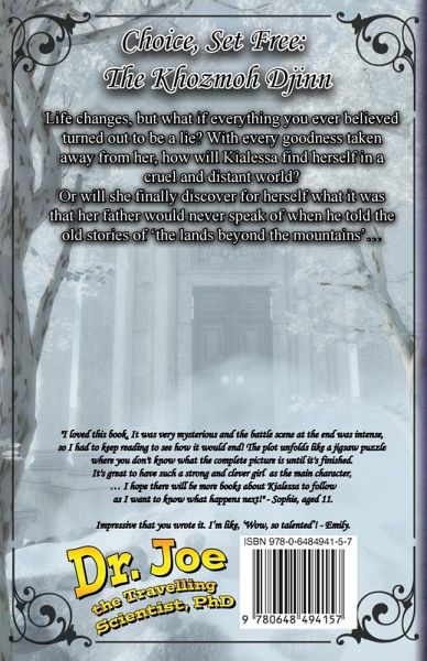 Life changes, but what if everything you ever believed turned out to be a lie? With every goodness taken away from her, how will Kialessa find herself in a cruel and distant world? Or will she finally discover for herself what it was that her father would never speak of when he told the old stories of 'the lands beyond the mountains'… "I loved this book. It was very mysterious and the battle scene at the end was intense, so I had to keep reading to see how it would end! The plot unfolds like a jigsaw puzzle where you don't know what the complete picture is until it's finished. It's great to have such a strong and clever girl as the main character, … I hope there will be more books about Kialessa to follow as I want to know what happens next!" - Sophie, aged 11. Impressive that you wrote it. I'm like, 'Wow, so talented'! - Emily.